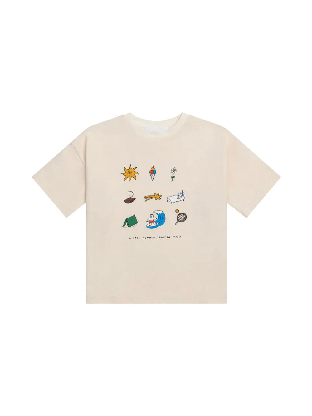 The Summer Magic Tee in unisex cream features an exclusive print by Orfeo Tagiuri for Lenn Label. With summer essentials such as sun, surf and ice cream featured - this relaxed oversized tee will be a summer fave.